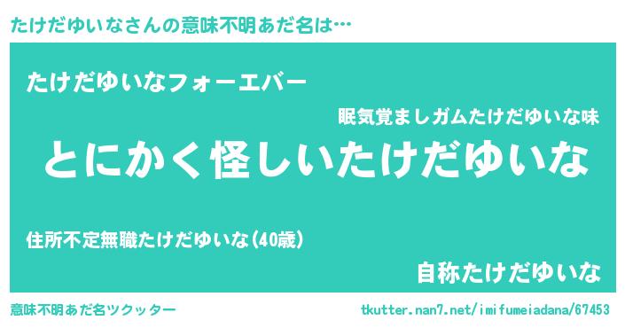 | ポケモン風あだ名 | 『タケゴンZ』『ヒタケダユイナ』 |