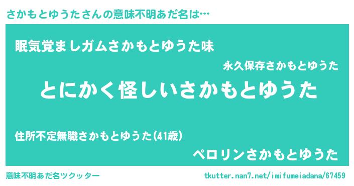 | ポケモン風あだ名 | 『ヒサカモトユウタ』『サックウザ』 |