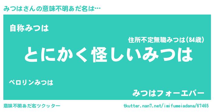 | 女子向けラノベタイトル風あだ名 | 『みつはの卵を拾いまして』『闇のみつは』 |