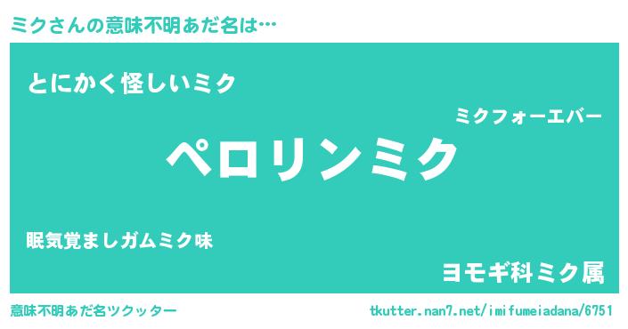 | ヘコむあだ名 | 『ミクにー』『ミクぷりん』『豆乳』 |