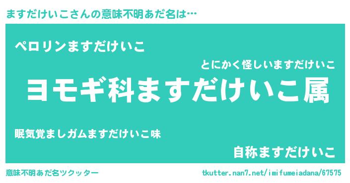 | 男性向けラノベタイトル風あだ名 | 『うちのますだけいこが世界を掌握している!』 |