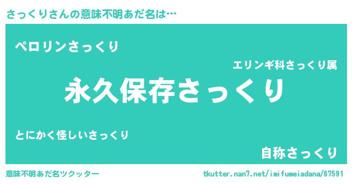 | 男性向けラノベタイトル風あだ名 | 『さっくりという概念が存在しない退屈な世界 』 |