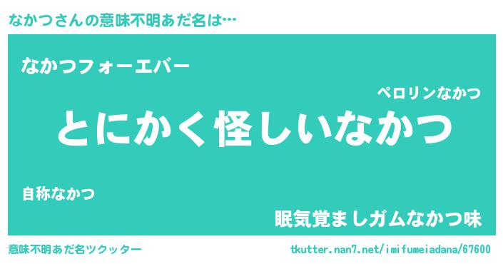 | 男性向けラノベタイトル風あだ名 | 『ダンジョンになかつを求めるのは間違っているだろうか』 |
