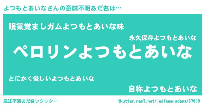| ヘコむあだ名 | 『よつふぇ~』『よつもとあいな(笑)』 |