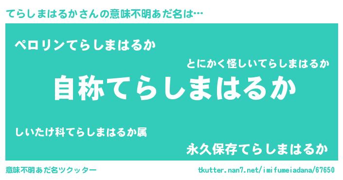 | 肩書あだ名 | 『てらしまはるか閣下』 |