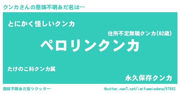 | 男性向けラノベタイトル風あだ名 | 『クンカの憂鬱』『緋弾のクンカ』 |