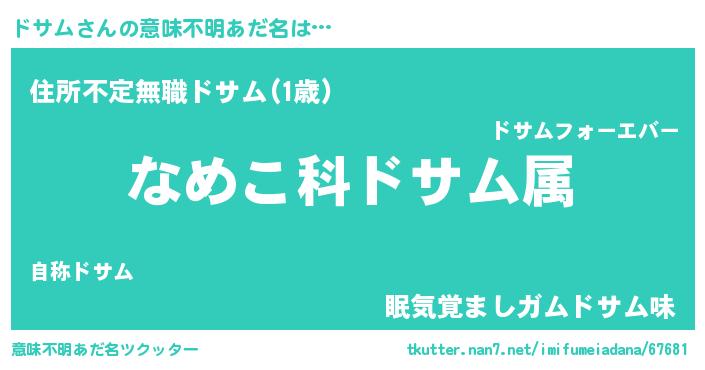 | ヘコむあだ名 | 『豆乳』『ドサム(小並感)』 |