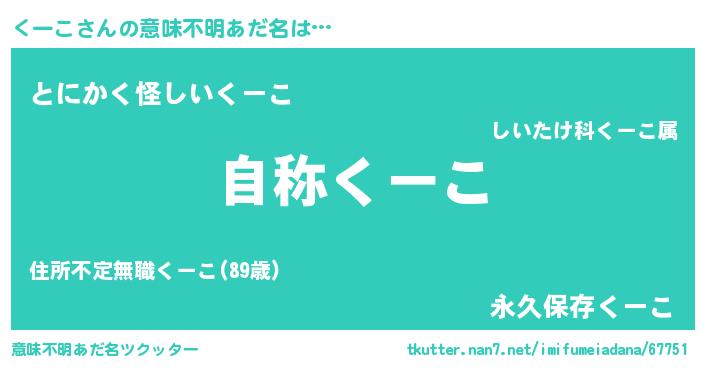 | 女子向けラノベタイトル風あだ名 | 『くーこなんてお断りですっ。』 |