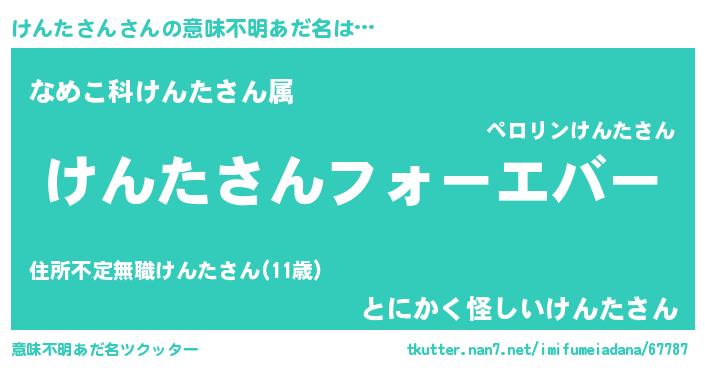 | 肩書あだ名 | 『けんたさん大統領』『けんたさん大佐』 |