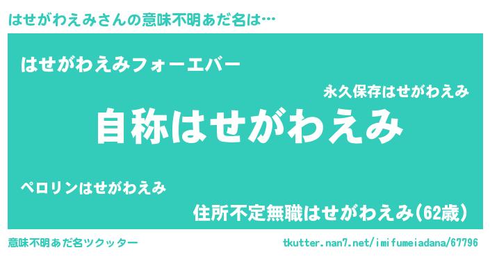 | ヒーロー風カッコイイあだ名 | 『最強戦士ハセガワエミ』『仮面ハセダー』 |