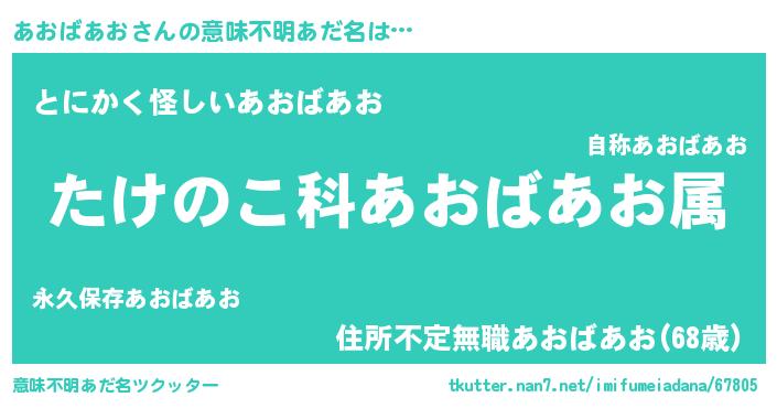 | 男性向けラノベタイトル風あだ名 | 『転生したらあおばあおだった件』 |