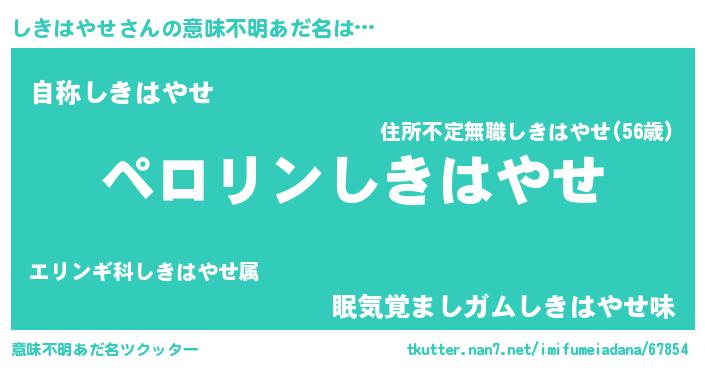| 男性向けラノベタイトル風あだ名 | 『シキハヤセアートオンライン』 |