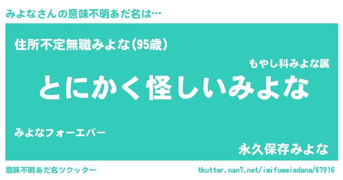 | ポケモン風あだ名 | 『ヒミヨナ』『ミヨゴンZ』『ミーヨイ』 |