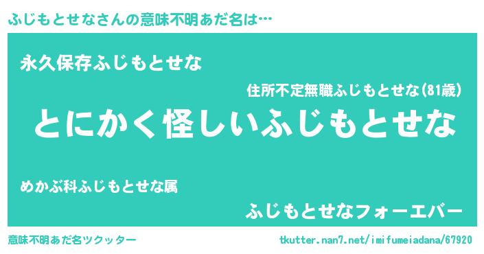| ポケモン風あだ名 | 『ヒフジモトセナ』『ゼニフジ』 |