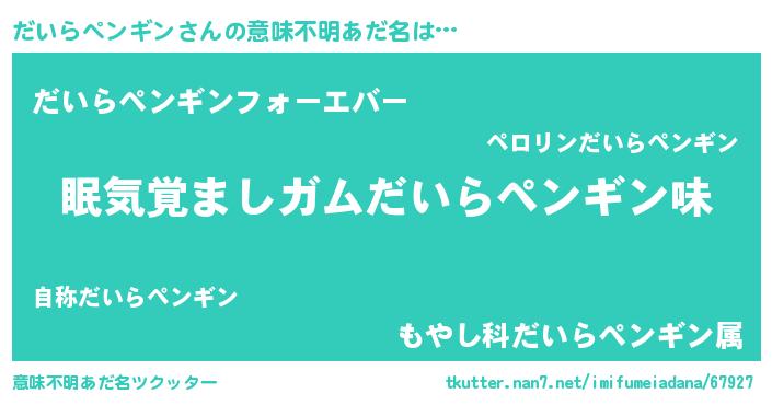 | ヒーロー風カッコイイあだ名 | 『正義の使者だいらペンギン』 |