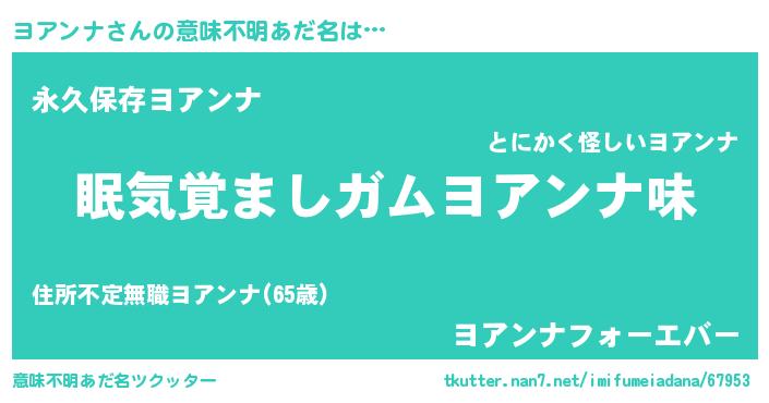 | ヘコむあだ名 | 『ヨアンナ(苦笑)』『酢こんぶ』 |