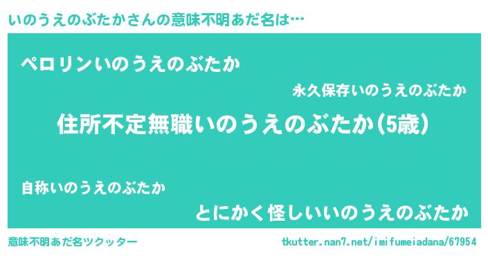 | 男性向けラノベタイトル風あだ名 | 『この素晴らしい世界にいのうえのぶたかを!』 |