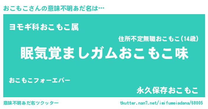 | ヒーロー風カッコイイあだ名 | 『愛の使者おこもこ』『ネオオコモコ』 |