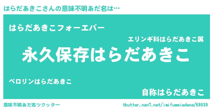 | 伝説のあだ名 | 『古文書に記された勇者はらだあきこ』 |