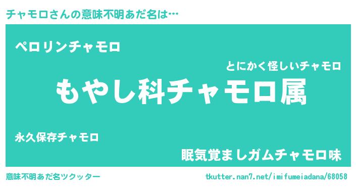 | 女子向けラノベタイトル風あだ名 | 『チャモロの玉の輿計画!』 |