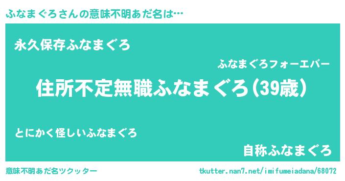 | 女子向けラノベタイトル風あだ名 | 『ふなまぐろが死なない童話 林檎のふなまぐろの診療簿』 |