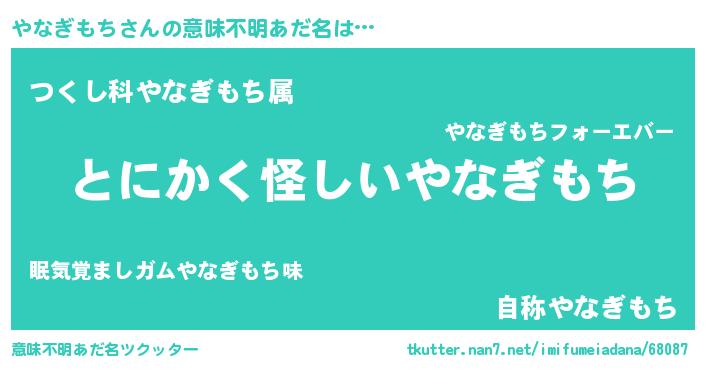 | 欧米人風あだ名 | 『ウサインやなぎもち』 |