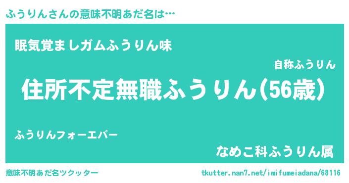 | 女子向けラノベタイトル風あだ名 | 『乙女ゲームの破滅フラグしかない悪役ふうりんに転生してしまった…』 |