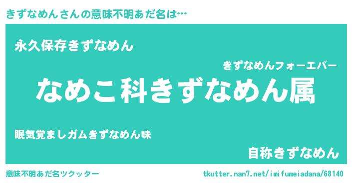 | 男性向けラノベタイトル風あだ名 | 『転生したらきずなめんだった件』 |