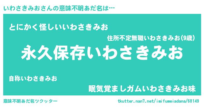 | 女子向けラノベタイトル風あだ名 | 『異世界で失敗しない100のいわさきみお』 |