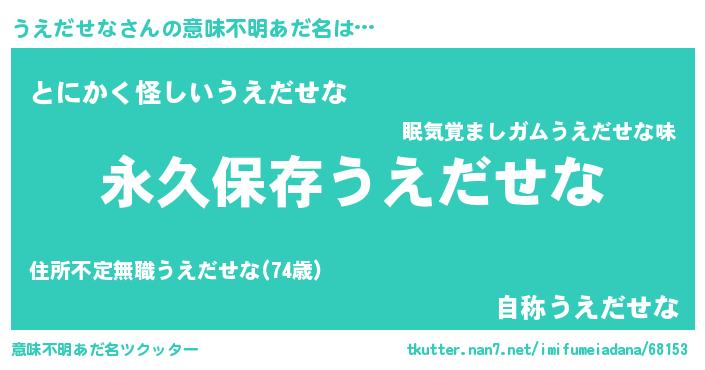 | ポケモン風あだ名 | 『ゼニウエ』『ヒウエダセナ』 |