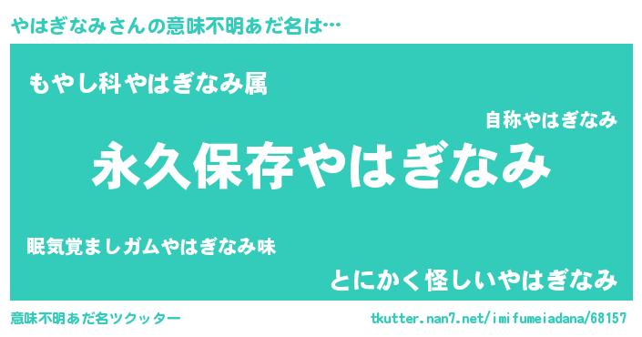 | 男性向けラノベタイトル風あだ名 | 『誰もが恐れるあのやはぎなみが、ぼくの専属メイドになるようです。』 |