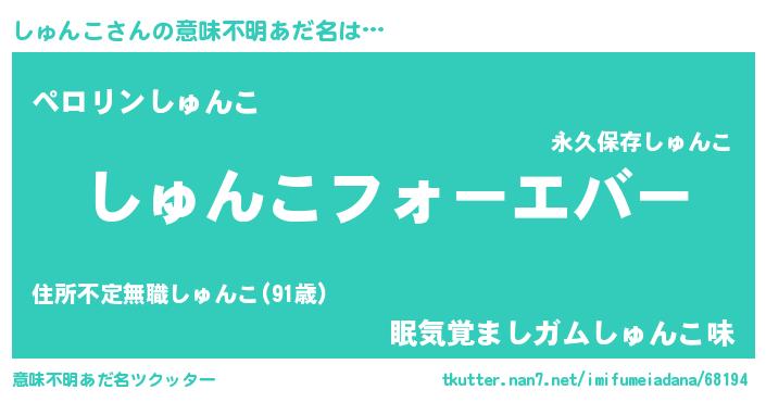 | ヒーロー風カッコイイあだ名 | 『ウルトラしゅんこマン』『ネオシュンコ』 |