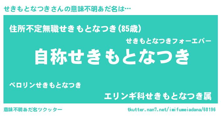 | 欧米人風あだ名 | 『ケンブリッジせきもとなつき』 |