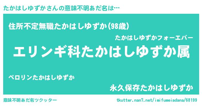 | 男性向けラノベタイトル風あだ名 | 『タカハシユズカスレイヤー』 |