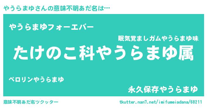 | 男性向けラノベタイトル風あだ名 | 『転生したらやうらまゆだった件』 |