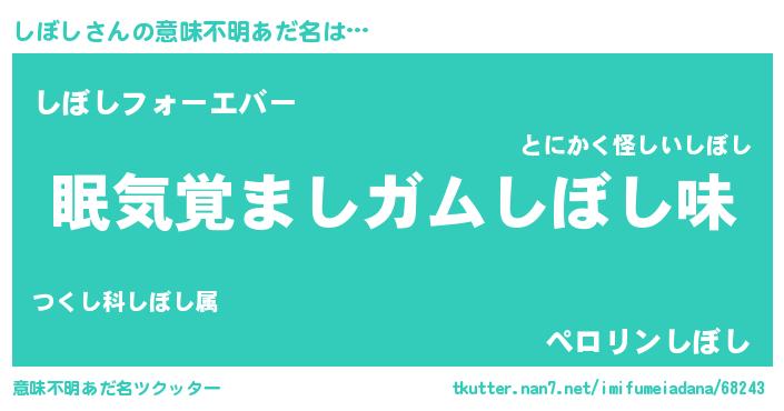 | ヒーロー風カッコイイあだ名 | 『天空の使者しぼし』『スーパーシボシ』 |