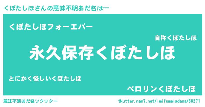 | 胡散臭い通販商品みたいなあだ名 | 『来世でも幸せになれる健康食品…その名も「くぼたしほ」』 |