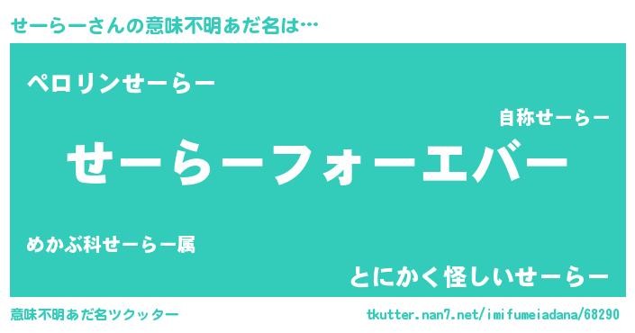 | 女子向けラノベタイトル風あだ名 | 『せーらーの雑貨屋さん』 |