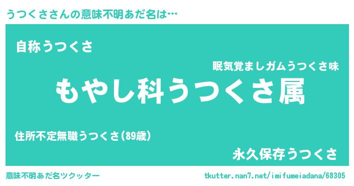 | 男性向けラノベタイトル風あだ名 | 『転生したらうつくさだった件』 |