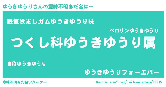 | ヒーロー風カッコイイあだ名 | 『慈愛の使者ゆうきゆうり』 |