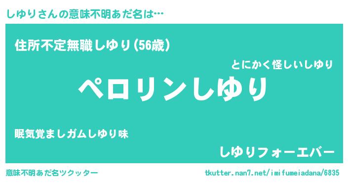 | 男性向けラノベタイトル風あだ名 | 『しゆりの憂鬱』『魔弾の王としゆり』 |