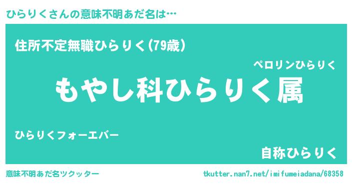 | 男性向けラノベタイトル風あだ名 | 『転生したらひらりくだった件』 |