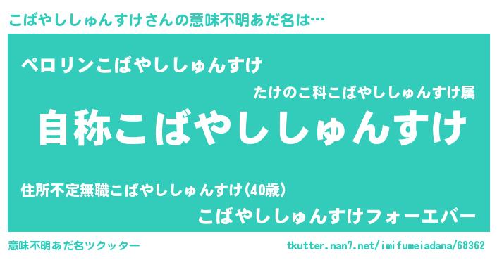 | 男性向けラノベタイトル風あだ名 | 『Re:こばやししゅんすけから始める異世界生活』 |