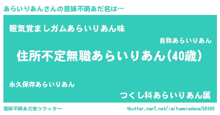 | ヘコむあだ名 | 『あらいりあん(笑)』『あらふぇ~』 |