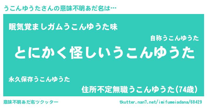 | 男性向けラノベタイトル風あだ名 | 『うこんゆうたの嫁は女の子じゃないと思った?』 |