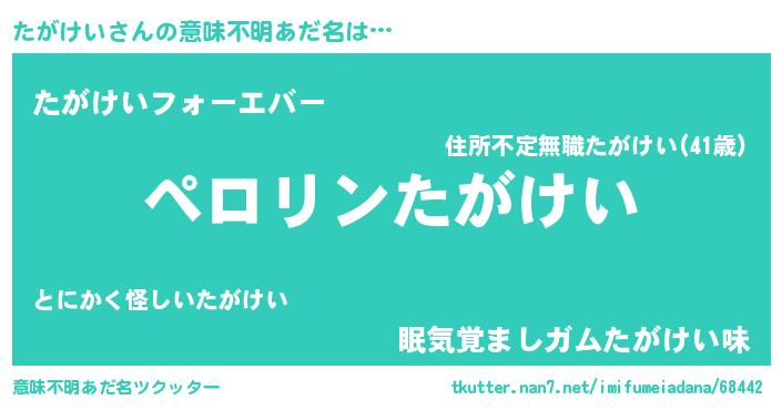 | 胡散臭い通販商品みたいなあだ名 | 『億万長者になれる霊験あらたかなお札…その名も「たがけい」』 |