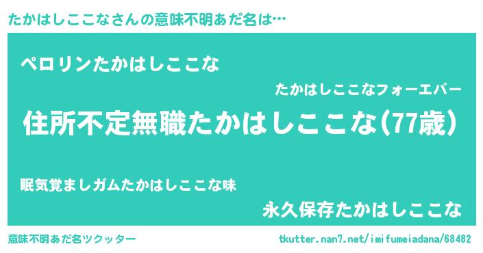 | 胡散臭い通販商品みたいなあだ名 | 『ハリウッド女優が絶賛した世界で10本だけ現存している希少なブランデー…その名も「たかはしここな」』 |