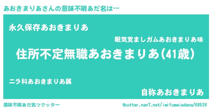 | 男性向けラノベタイトル風あだ名 | 『この素晴らしい世界にあおきまりあを!』 |