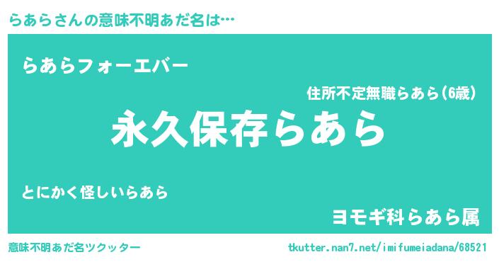 | ヒーロー風カッコイイあだ名 | 『ネオラアラ』『ウルトラらあらマン』 |