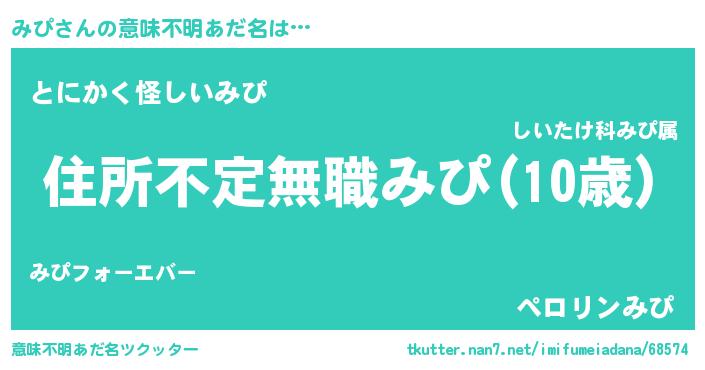 | 男性向けラノベタイトル風あだ名 | 『この素晴らしい世界にみぴを!』 |